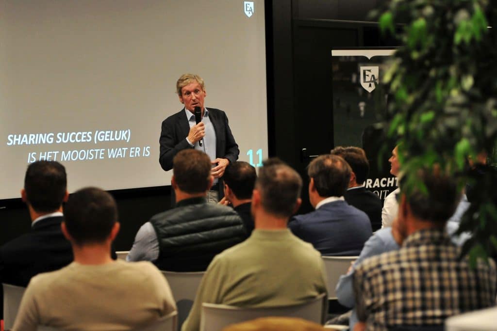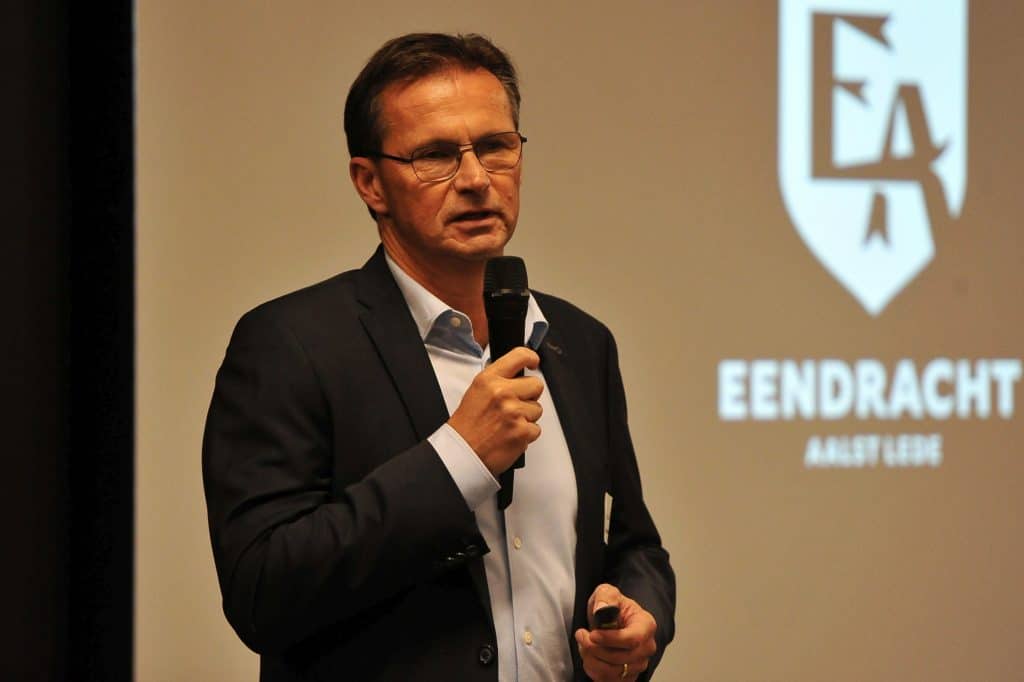 Nieuws — 11 oktober 2025 Eerste succesvol business event Home – Nieuws – Eerste succesvol business event Eerste succesvol business event met Francky Dury 11 oktober 2025 In de kantoren van Skyline E40 in Erembodegem vond afgelopen donderdag ons eerste partnerevent plaats. Meer dan 100 aanwezigen waren getuige van voorzitter Guy Valckenier en manager David Pauwels, die de toekomstplannen van onze mooie club verduidelijkten. Ook ex-coach Francky Dury bracht samen met Jan Jodts zijn elf levenslessen die hij in een carrière van twintig jaar als proftrainer heeft opgedaan. Dank aan Yono Technics voor de technische omkadering en The Happy Chefs van Stijn Van Den Steen voor de culinaire hoogstandjes. Vanaf 2026 willen we écht van start gaan met een businessclubverhaal, waarover we later nog meer informatie brengen. Gerelateerd nieuws Nieuws — 09 oktober 2025 Kom naar ons jaarlijks mosselfestijn! Op 24, 25 en 26 oktober Binnenkort kan je onze club steunen door naar het driedaagse mosselfestijn te komen. Dit start op vrijdagavond 24 oktober,…Lees meer Nieuws, Fans — 06 oktober 2025 Laatste tickets voor bekerwedstrijd Online verkoop vanaf 17u00 De interesse voor het bekerduel in en tegen Club Brugge van woensdag 29 oktober is gigantisch. Via het supporterscollectief Wit &…Lees meer Nieuws — 04 oktober 2025 Met Vadis Odjidja over toen en nu VADIS ODJIDJA: “Onze supporters amuseren zich” Naast Joran Triest heeft ook Vadis Odjidja deze week terug kunnen aansluiten bij de groep. Een goed moment voor…Lees meer