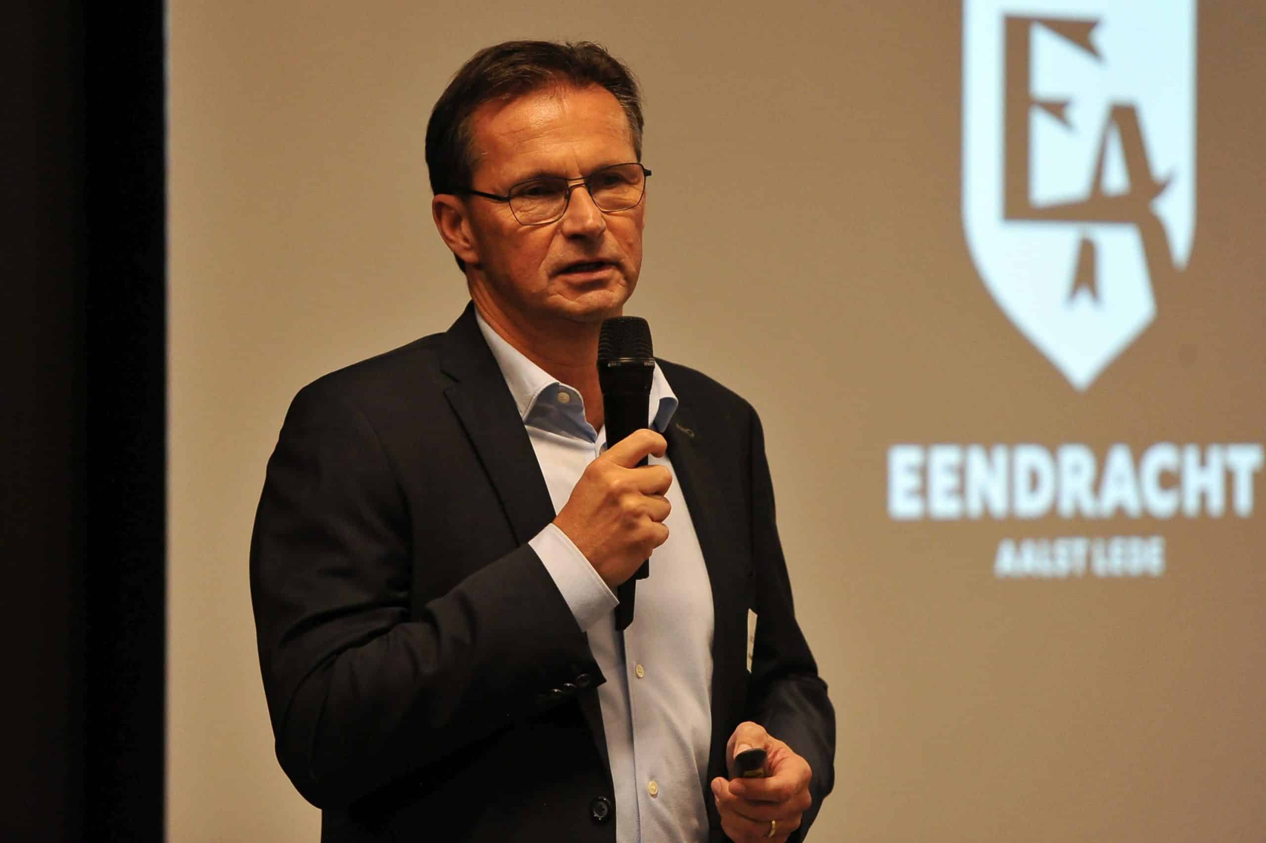 Nieuws — 11 oktober 2025 Eerste succesvol business event Home – Nieuws – Eerste succesvol business event Eerste succesvol business event met Francky Dury 11 oktober 2025 In het Meeting Center van Skyline E40 in Erembodegem vond afgelopen donderdag ons eerste partnerevent plaats. Meer dan 100 aanwezigen waren getuige van voorzitter Guy Valckenier en manager David Pauwels, die de toekomstplannen van onze mooie club verduidelijkten. Ook ex-coach Francky Dury bracht samen met Jan Jodts zijn elf levenslessen die hij in een carrière van twintig jaar als proftrainer heeft opgedaan. Dank aan Yono Technics voor de technische omkadering en The Happy Chefs van Stijn Van Den Steen voor de culinaire hoogstandjes. Vanaf 2026 willen we écht van start gaan met een businessclubverhaal, waarover we later nog meer informatie brengen. Gerelateerd nieuws Nieuws — 25 november 2025 Welkom Dave De Herdt! Nieuwe HOOFDcoach Eendracht Aalst Lede heeft een overeenkomst bereikt met Dave De Herdt (45) als nieuwe coach en opvolger van Sandy Casieris. Van leerling tot…Lees meer Nieuws — 20 november 2025 100% Iendracht, 100% Oilsjters DNA Twee supporters door de woestijn Mogelijk is er jou de voorbije weken een gevelreclame opgevallen tussen de Heilig Hartkerk en het Pierre Cornelisstadion. Een foto…Lees meer Nieuws — 17 november 2025 Afscheid van Sandy Casieris Tommy De Kegel neemt voorlopig over Het clubbestuur heeft een einde gemaakt aan de samenwerking met coach Sandy Casieris. We houden eraan Sandy te bedanken…Lees meer