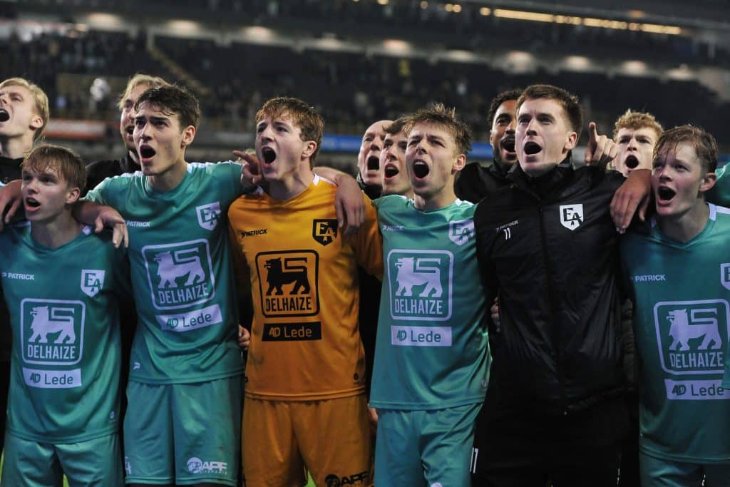 Club Brugge VS Eendracht Woensdag 29 oktober, 20u30 Jan Breydelstadion Croky Cup 6-1 Home - Wedstrijden - Club Brugge – Eendracht Aalst Lede Wedstrijdfases Verslag Video Foto 90' Sandra legt de 6-1 eindcijfers vast. 90' Eendracht verlaat het bekertoneel en focust verder op de competitie. We bedanken de massaal meegereisde supporters voor hun vocale steun! 85' Bauwens lijkt gekwetst en moet naar de kant. Rasschaert komt op het veld. 84' Nilsson besluit centimeters naast na een teruglegger van Tresoldi. 74' De trap van Van Den Eeckhout gaat via een verdediger naast. De hoekschop wordt door Favoreel over gekopt. 73' Ndefe gaat naar de kant voor Hornick. 70' De afgeweken knal van Sandra verdwijnt in doel (5-1). 68' Vetlesen trapt in eerste instantie tegen de paal. In de rebound viseert Nilsson het zijnet. 66' Rosschaert komt Van Peteghem aflossen. 60' Cooman zweeft de uithaal van Diakhon uit zijn doel. 59' Geenens trapt niet zo ver naast. 57' De trap van Diakhon verdwijnt via het hoofd van Bauwens tegen de netten. Opnieuw een ongelukkig tegendoelpunt (4-1). 52' Triest gaat alleen door en trapt de eerredder tegen de netten (3-1). 48' Siquet plaatst een vrije trap hoog over. 47' Ook bij de thuisploeg een dubbele wissel. Mechele en Vanaken bleven binnen. 46' Bauwens en Van Den Eeckhout beginnen aan de tweede helft in de plaats van Lanckman en Kofi Nyarko. 45' De scheidsrechter maakt een einde aan de eerste helft. 44' Van Peteghem devieert een voorzet van Ndefe richting doel. De doelman redt. Er was ook gevlagd voor buitenspel. 42' Vetlesen wordt aangespeeld in de zestien. Hij mikt over. 38' Een lage voorzet van Diakhon wordt door Wantens ongelukkig in het eigen doel gedevieerd (3-0). 35' Eendracht versiert een hoekschop. Nadat deze wordt weggekopt, knalt Wantens over. 33' Via de voet van Cooman gaat de trap van Furo tegen de paal. 29' Het schot van Vetlesen wordt afgeblokt. 24' Via het been van Favoreel gaat de poging van Furo naast. De hoekschop levert niets op. 22' Campbell komt naar binnen maar besluit voorlangs. 18' Onze supporters laten zich vocaal horen en moedigen onze spelers massaal aan. 17' Cooman houdt Sandra met een knappe redding van een doelpunt. 14' Campbell kan besluiten en laat Cooman kansloos. Het staat 2-0. 8' Cooman krijgt een schot niet onder controle en de meegevolgde Mechele trapt de 1-0 in het lege doel. 4' Een poging van Van Peteghem gaat naast. 3' Furo komt net te laat bij de voorzet van Siquet. 2' Diakhon scoort al snel maar wordt teruggefloten wegens buitenspel. 1' De bal rolt! Vooraf' Welkom in het Jan Breydelstadion voor de langverwachte bekerwedstrijd tegen Club Brugge! Vooraf' De scheidsrechters hebben beslist dat we in het groene spelerstenue dienen te spelen. Vooraf' Odjidja viel in de opwarming uit waardoor Remacle aan de partij begint. Zoals verwacht heeft Eendracht de 1/16e finale van de Croky Cup niet overleefd maar de volledige entourage beleefde op zich wel een schitterende avond. Meer dan 2000 dolenthousiaste bezoekende fans zorgden voor een unieke vocale sfeer en dat alleen al maakte van deze wedstrijd een fantastisch gebeuren. De sfeerlichtjes vanuit de tribune zorgden vijf minuten voor affluiten zelfs voor een kippenvelmoment. Club neemt snel afstand Na een paar minuten bleek al dat een bekerverrassing er niet zou inzitten. Het uiterst snelle doelpunt van Diakhon werd echter afgekeurd wegens buitenspel. Het bleek slechts uitstel want wanneer doelman Ebbe Cooman de bal niet kon klemmen, tikte de meegevolgde Mechele binnen (8’). Blauw-zwart bleef het gaspedaal indrukken en wou zo snel mogelijk de partij in een beslissende plooi leggen. Nog voor het kwartier verdubbelde Campbell de voorsprong (14’). Met een knappe save voorkwam Ebbe Cooman een derde treffer (17’). Een poging van Furo, verwoed op zoek naar een doelpunt, ging via de voet van Ebbe Cooman tegen het doelhout (33’). Het derde doelpunt viel toch wanneer Lars Wantens ongelukkig de bal in eigen doel verwerkte na een voorzet van Diakhon (38’). Feest na eerredder Na de rust was er toch even een korte periode waarin de bezoekers wat meer weerwerk konden bieden. Wanneer Joran Triest aan de haal ging na een foutje van Osuji en doelman Van Den Heuvel verschalkte, volgde een intens moment van vreugde voor iedereen (52’). Deze was evenwel van korte duur. Jari Bauwens kopte de bal ongelukkig in eigen doel na een trap van Diakhon (57’) en Brugge zette de pletwals opnieuw in gang. Ebbe Cooman onderscheidde zich nog een paar keer, de paal verhinderde een lokaal doelpunt maar uiteindelijk diepte Sandra de voorsprong nog uit met twee doelpunten (70’ en 90’). Al bij al toch een mooie (beker)prestatie van Eendracht, dat deze onvergetelijke avond nog lang in het geheugen zal houden. De focus moet nu snel terug naar de competitie verlegd worden want zondag komt Lauwe al op bezoek in het Pierre Cornelisstadion. Verslag: Roland Creutz Redactie: webteam Match info Eendracht Aalst Lede 1 Club Brugge 6 Woensdag 29 oktober, 20u30 Jan Breydelstadion Olympialaan 74, 8200 Brugge 8' Brandon Mechele 1-014' Shandre Campbell 2-038' Lars Wantens 3-052' Joran Triest 3-157' Jari Bauwens 4-170' Cisse Sandra 5-190' Cisse Sandra 6-1 Eendracht Aalst Lede 21 Ebbe Cooman 18 Falko Geenens 26 Calvin Dekuyper 4 Ilian Favoreel 5 Lars Wantens 24 Simon Lanckman 7 Nicolas Van Peteghem 19 Emmanuel Kofi Nyarko 70 Robby Ndefe 9 Joran Triest 20 Mathis Remacle Wissels 46' Tim Van Den Eeckhout 46' Jari Bauwens 66' Jarne Rosschaert 73' Jelle Hornick 85' Arthur Rasschaert 46' Simon Lanckman 46' Emmanuel Kofi Nyarko 66' Nicolas Van Peteghem 73' Robby Ndefe 85' Jari Bauwens Coach Sandy Casieris Club Brugge 16 Dani Van Den Heuvel 2 Zaid Romero 10 Hugo Vetlesen 11 Cisse Sandra 20 Hans Vanaken 41 Hugo Siquet 44 Brandon Mechele 58 Jorne Spileers 67 Mamadou Diakhon 84 Shandre Campbell 87 Kaye Furo Wissels 46' Vince Osuji 46' Alejandro Granados 63' Gustaf Nilsson 63' Nicolo Tresoldi 72' Samuel Gomez Van Hoogen 46' Brandon Mechele 46' Hans