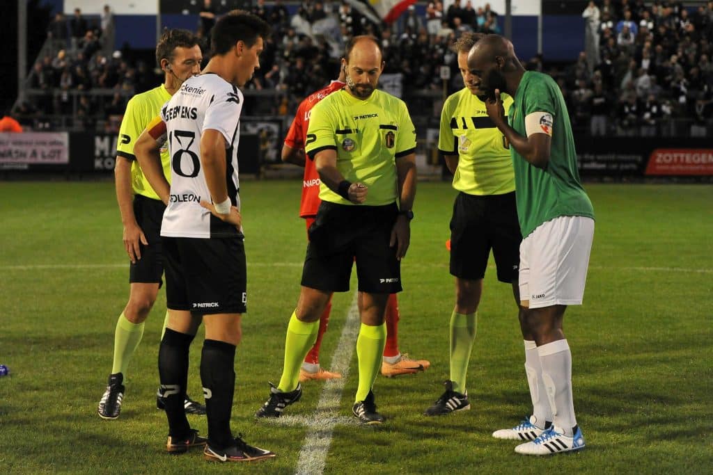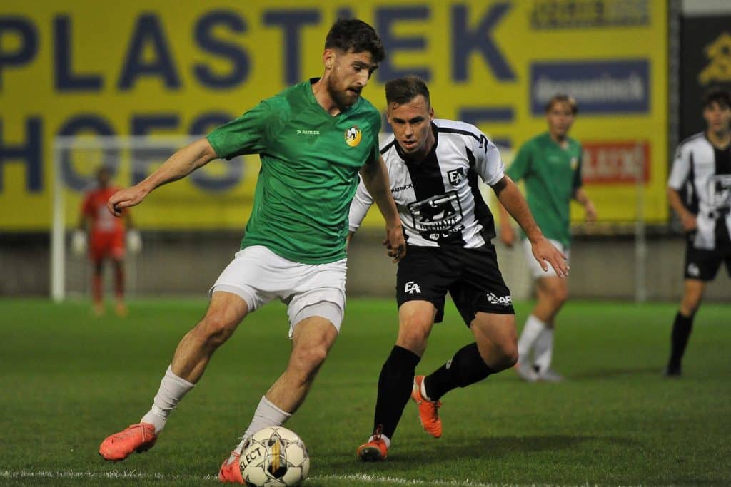 Eendracht VS Fenixx Beigem Humbeek Woensdag 10 september, 20u30 Pierre Cornelisstadion Derde nationale 1-1 Home - Wedstrijden - Eendracht Aalst Lede – Fenixx Beigem Humbeek Wedstrijdfases Verslag Video Foto Livestream 95' De ref fluit af. De eindstand is 1-1. Op naar Boezinge. Supporters op post! 91' De vrije trap wordt gemakkelijk weggewerkt. 90' Laureys stopt de snelle Ndefe foutief af. Vrije trap. 88' Wissel bij Humbeek: Verliefden verlaat het veld voor Van Langeraert. 86' Geenens kopt een hoekschop over. 85' Nieuwe wissel bij de bezoekers. Van Steirteghem komt in de plaats van Caira. 82' Van Peteghem mist. Het blijft 1-1 81' Penalty voor Eendracht! Ndefe wordt foutief gehaakt in de zestien. 79' Het wordt 1-1 na een hoekschop. Meylemans maakt de gelijkmaker. 77' Straetman wordt het straatje ingestuurd maar wordt onterecht afgevlagd voor buitenspel. 76' Eki trapt uit een hoekschop hard op doel. Maar Landot is attent en duwt de bal in hoekschop. De hoekschop levert geen doelgevaar op. 74' Straetman trapt een mooie kans te zacht op doel. Verleysen heeft er geen moeite mee. 71' Nieuwe wissel bij Eendracht. Remacle en Wantens gaan naar de kant voor Straetman en Dekuyper. 68' Opnieuw een schot uit de tweede lijn van Caira. Maar ook zijn schot gaat hoog over. 67' De ingevallen Desmet trapt de vrije trap hoog over. 62' Dubbele vervanging bij de bezoekers. Vandroogenbroeck en El Hadj worden vervangen door Meylemans en Eki. 59' Verliefden krijgt het eerste gele karton onder de neus geduwd na een fout op Bauwens. 58' Vadis Odjidja gaat naar de kant. Van Den Eeckhout neemt zijn plaats in. 56' De voorzet van Van Peteghem wordt in hoekschop getrapt. 55' Kofi ziet de vrijstaande Remacle, maar hij krijgt de bal niet goed onder de controle. 50' De hoekschop levert geen doelgevaar op. 49' Afgeweken schot van Van Peteghem gaat in hoekschop. 46' Ook vervanging bij Eendracht Aalst Lede. Triest blijft in de kleedkamer. Hij wordt vervangen door Kofi Nyarko. 46' Vervanging bij de bezoekers. Desmet komt in de plaats van Barbieux. 45' We gaan rusten. Aalst Lede leidt met 1-0. 43' De hoekschop voor Humbeek wordt overgekopt door Kanana. 41' Remacle speelt de bal op links door naar Ndefe die hard op de keeper trapt. Hoekschop. 39' Triest kopt de bal tegen de touwen na een voorzet van Geenens, maar de assistent scheidsrechter vlagt voor off-side. Het feestje gaat niet door. 38' Wantens speelt zich mooi vrij maar zijn voorzet belandt in de handen van Verleysen. 34 ' Een afzwaaier van Caira gaat ver naast. 31' Vrije trap voor Humbeek. De bal wordt strak voorgezet door Verliefden, maar Kanana kan niet bij de bal. 27' Ndefe kapt zich mooi vrij. De bal spat via de onderkant van de lat opnieuw het veld in. 22' GOAL!! Van Peteghem duwt de bal tegen de netten, nadat Verliefden een mooie kans op Landot trapte. 22' Mooie doorsteekpass van onze kapitein Falko die de goal inleidde. 15' Hoekschop voor Eendracht. Bauwens besluit over het doel. 11' Van Peteghem loopt zich vast op een doorgestoken bal van Odjidja. De scheids ziet er geen fout in. 10' De scheids fluit een fout op Remacle, net buiten de zestien. Wantens knalt in de handen van Verleysen. 1' Triest trapt de wedstrijd op gang. VOORAF' Welkom in het Pierre Cornelisstadion voor de inhaalwedstrijd tegen Fenixx Beigem Humbeek! Na de sensationele maar slopende bekerkwalificatie van afgelopen zondag trokken de troepen van Sandy Casieris de wei in tegen Fenixx Beigem Humbeek, dat via de eindronde promoveerde naar de nationale amateurreeksen. Door het drukke wedstrijdschema, met drie wedstrijden op zeven dagen, bracht de coach vijf nieuwe namen aan de aftrap. Londot, Bauwens, Odjidja, Triest en Remacle startten aan de wedstrijd. Cooman, Straetman, Nyarko, Dekuyper en Van Den Eeckhout namen plaats op de bank. Mede door de U23-regel werd Lanckman rust gegund. Weinig kansen De eerste twintig minuten werd er weinig weggegeven. Kansen bleven, mede door spelonderbrekingen na kleine foutjes, uit. Halfweg de eerste helft moest Londot aan de bak om een bezoekend schot af te weren. Op de tegenaanval die volgde, opende Eendracht de score. Geenens lanceerde Van Peteghem, die de uitgekomen doelman omspeelde en de 1-0 in het lege doel mikte. Het doelpunt zorgde meteen voor een boost want amper later zag Ndefe zijn loeihard schot op de onderkant van de lat opnieuw het veld inspatten. Het gaspedaal bleef enigszins ingedrukt en in minuut 39 kopte Triest de mooi afgemeten voorzet van Geenens tegen de touwen. Het feestje was echter van korte duur want de vlag van de lijnrechter ging de hoogte in. Eendracht ging de rust in met een al bij al verdiende 1-0 voorsprong. Punten te grabbel gegooid Na de pauze toonden de bezoekers zich een stukje gretiger. De ploeg zette hoog druk waardoor Eendracht het moeilijk had om een opening te vinden. In minuut 55 zag Kofi Nyarko, bij de rust ingekomen voor de uitgevallen Triest, de alleenstaande Remacle voor doel opduiken. Hij kreeg de bal niet onder controle. Fenixx stak ondertussen twee keer de neus aan het venster in vrijwel dezelfde minuut (67′). De vrije trap van Desmet ging hoog over doel en ook Caira probeerde het tevergeefs vanuit de tweede lijn. Namens Eendracht kon invaller Straetman doelman Verleysen amper bedreigen door te zwak af te drukken (74’). Aan de overkant moest Londot vol aan de bak om een hard schot van Eki in hoekschop te boksen (76’). De daaropvolgende hoekschop leverde voor de bezoekers niets op maar luidde een snelle tegenaanval in voor de Ajuinen. Straetman werd met een lange pass alleen richting doel gestuurd. Tot groot ongenoegen van zowat al wat wit en zwart was, werd de actie onterecht voor buitenspel afgevlagd. Terwijl deze actie nog nazinderde, kwam Fenixx opzetten. Een goed opgezette aanval op links werd in hoekschop gewerkt. Daaruit kon de ingevallen Meylemans de 1-1 tegen de netten koppen (79’). Kort nadien volgde een unieke kans om opnieuw op voorsprong te klimmen. Ndefe werd foutief gehaakt in het strafschopgebied
