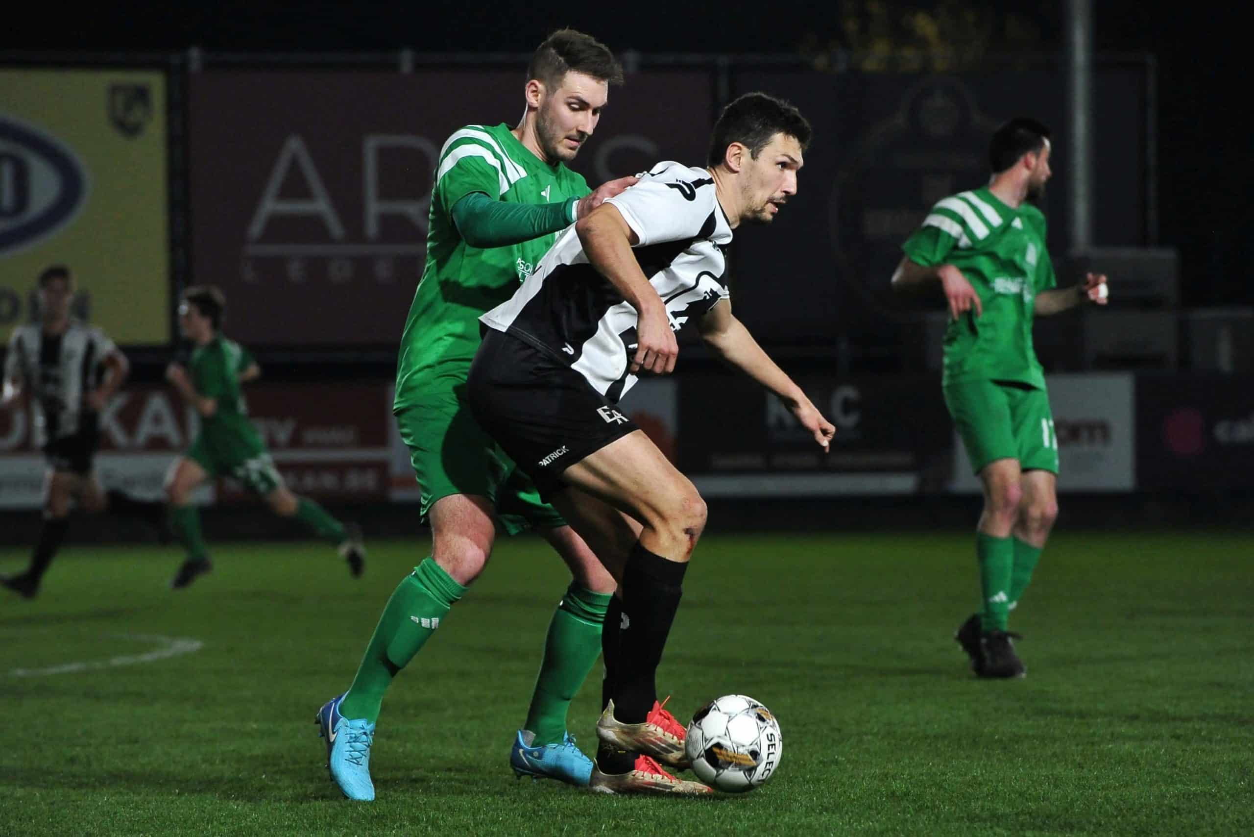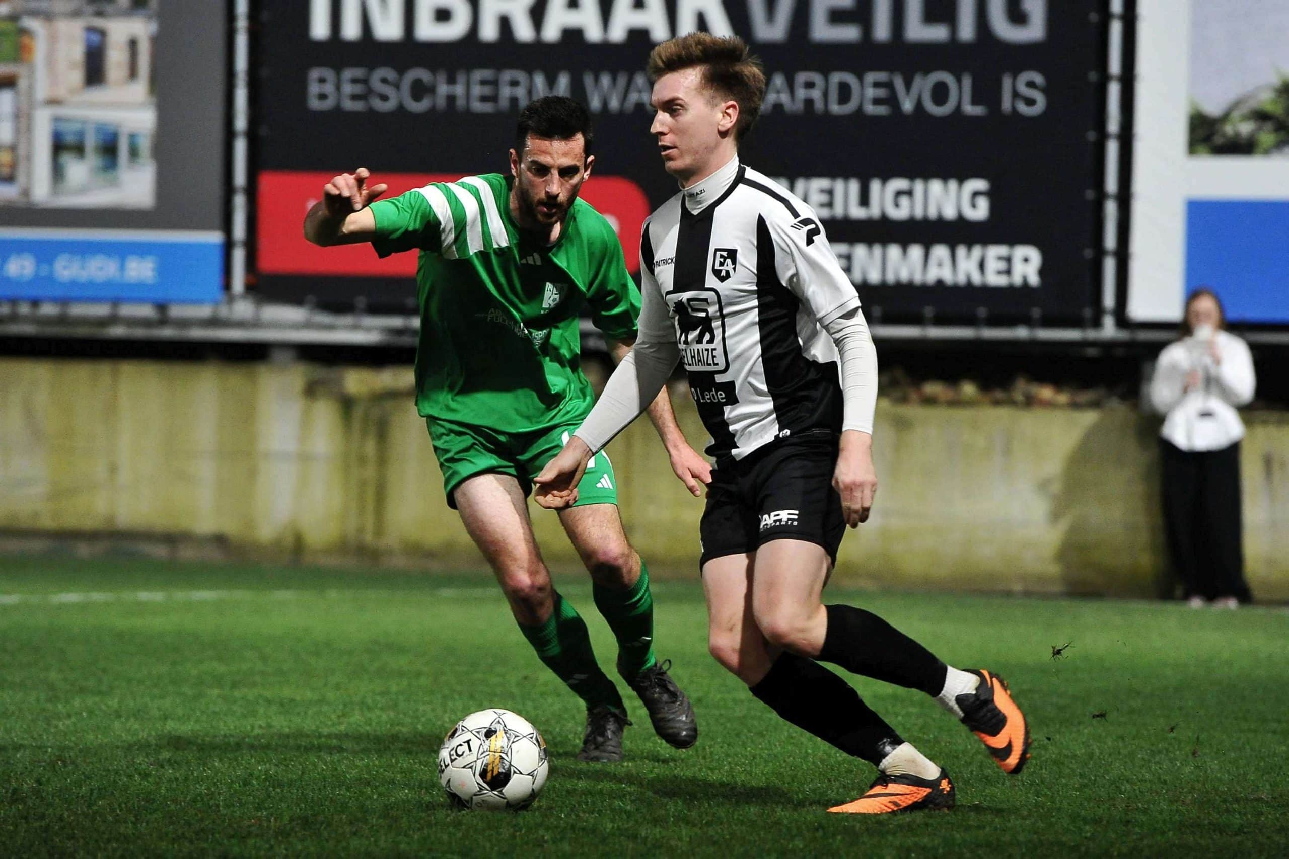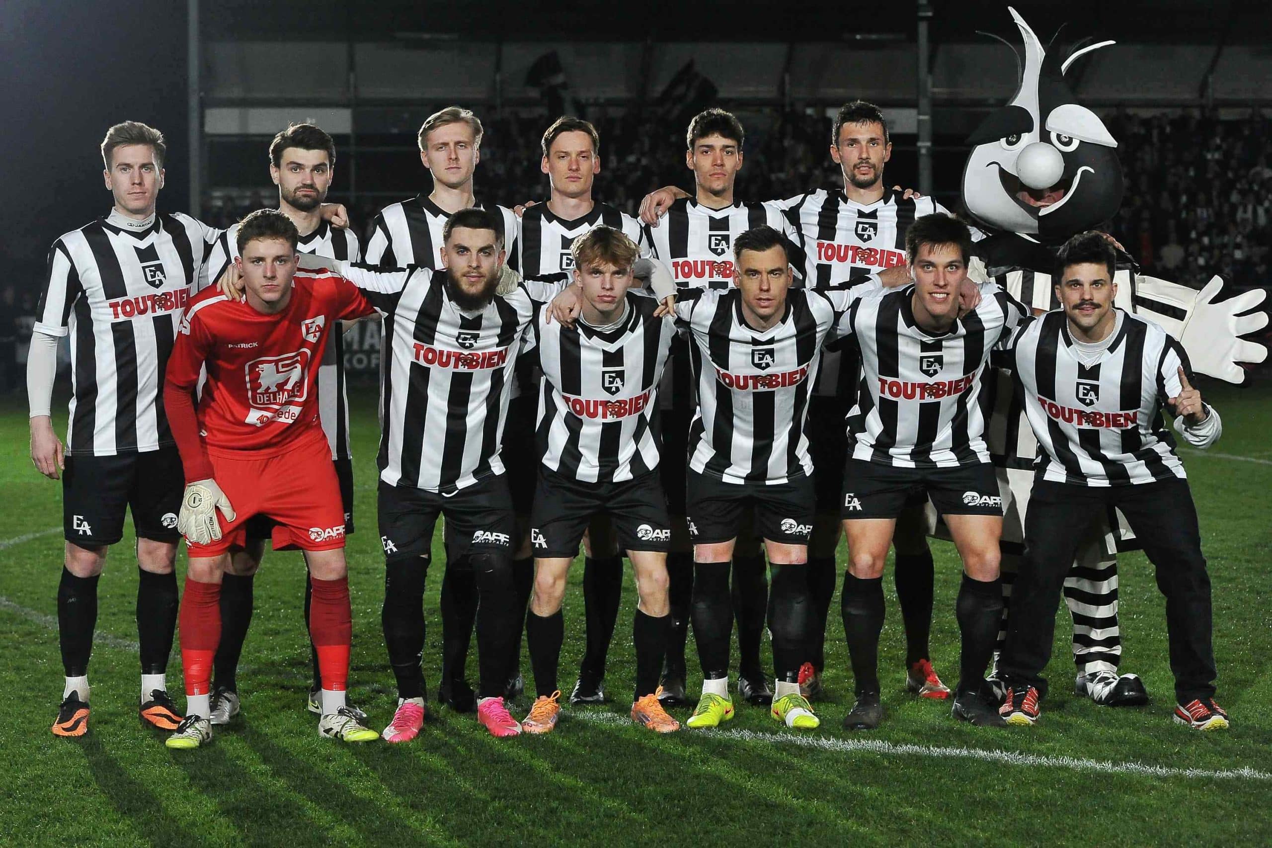 Eendracht VS Sint-Denijssport Vrijdag 6 maart, 20u30 Pierre Cornelisstadion Derde nationale 3-3 Home - Wedstrijden - Eendracht Aalst Lede – KVV Sint-Denijssport Wedstrijdfases Verslag Foto Livestream 90' GOALLLLLLLLL!! Hornick met de 3-3 88' Wiafe deze keer met de kopbal. De bal gaat naast. 86' Wiafe trapt naar doel. Cooman met de voet in hoekschop. 84' Hornick heeft de 3-3 aan de voet maar De Jonghe redt de meubelen. 80' Lars Wantens met de aansluitingstreffer 2-3. De laatste tien minuten worden alles of niets... 69' Stand wordt 1-3. Een schot van Dekeyser kan Cooman niet bij. 65' Favoreel pakt zijn tweede gele kaart: rood. Hij onthield Newman van een counter. 61' Geenens kopt op hoekschop net naast. 60' Newman trapt hard in de handen van Cooman. Die pakt in twee keer. 52' Straetman kapt zich mooi vrij, schiet naar doel, maar de bal gaat naast. 46' Vadis Odjidja komt in de ploeg voor Jari Bauwens. Favoreel komt opnieuw centraal in de verdediging en Wantens neemt als vertrouwde linkerflankverdediger zijn stek weer in. 45' Triest krijgt geel voor protest. De ref blaast de rust. 41' GOAL!! Straetman schiet de aansluitingstreffer tegen de touwen. Het doelpunt kwam na hoekschop van Wantens. 32' Strafschop voor St. Denijs. Newman wordt foutief gestopt in de zestien. De 0-2 is een feit. Mooi in de rechterbenedenhoek. 29' Van De Velde Lucas krijgt geel voor gevaarlijk spel. 24' Wiafe kopt in de handen van Cooman. 20' Mooi aangesneden hoekschop voor Eendracht maar hij botst voor doel iedereen voorbij. 16' Op de daaropvolgende hoekschoppen kan Wiafe de bal toch binnen trappen. De stand wordt 0-1, tegen de gang van het spel in. 14' Wiafe dribbelt zich vrij en staat plots voor Cooman, de bal rolt richting leeg doel maar Geenens is goed teruggekeerd om te bal weg te trappen. De trap van Wiafe is niet hard genoeg. 13' Straetman met een loeier naar doel maar De Jonghe zit er tussen. 10' Voorzet Geenens maar Triest kan er net niet bij. Denijs krijgt de bal niet weg waarop Straetman opnieuw mag voorzetten. Triest komt een haarlengte tekort en ziet de bal net naast gaan. 5' Van De Velde Sander met de omhaal in handen van Cooman. 3' Straetman wordt mooi aangespeeld door het centrum. Zijn schot gaat langzaam naast. 1' En we zijn vertrokken... Dekeyser trapt af voor St. Denijs. Krijgen we evenveel spektakel als de lichtshow net voor de wedstrijd? We zetten ons aal achter ons ploeg! VOORAF' Voor deze mooie affiche tussen de nummers 3 en 4 is Gil Vandamme opnieuw wedstrijdfit en staat hij meteen aan de aftrap. Jordy Schelfhout en Robby Ndefe krijgen in de ziekenboeg het gezelschap van Emmanuel Kofi Nyarko en Jelle De Mil. Falko Geenens en Calvin Dekuyper keren terug uit schorsing. De omkadering van deze wedstrijd was sensationeel en dit trok zich met een doelpuntenrijke wedstrijd, en een onverhoopte ommekeer, door naar het veld. Al dit kruidde de volledige avond tot een uiterst aangename. Niet zonder kleerscheuren door de eerste helft Bij Eendracht keerden Falko Geenens en Calvin Dekuyper na hun schorsing terug in de basis. Gil Vandamme behoorde eveneens tot de elf starters. In een sfeervol stadion waren de eerste twee mogelijkheden voor Bob Straetman. Met amper twee minuten op de klok besloot hij voorlangs. Bij zijn tweede schot duwde doelman De Jonghe de bal over de lat (13’). Een vrank en vrij voetballend St-Denijs zag een eerste poging op de lijn gered door Falko Geenens (14’). Even later bracht Wiafe de bezoekers uit een hoekschop toch op voorsprong: 0-1 (16’). De thuisploeg had niet meteen een antwoord in huis en kreeg iets na het halfuur zelfs een strafschop tegen. Newman verdubbelde de voorsprong: 0-2 (32’). Hoewel de vlam er op de tribunes constant in zat, sloeg deze niet echt over op de elf Ajuinen op het terrein. Met het rustsignaal in zicht lukte Bob Straetman toch de aansluitingstreffer. Op hoekschop van Lars Wantens duwde hij de afvallende bal in de verste hoek: 1-2 (41’). Weerbaar tiental sleept punt uit de brand Eendracht startte de tweede helft met powerplay. Opnieuw stond Bob Straetman aan het kanon, maar zijn schot ging rakelings naast (52’). De kopbal van Falko Geenens, na hoekschop, was hetzelfde lot beschoren (61’). St-Denijs prikte regelmatig wel tegen maar kon de pogingen niet kadreren. Op minuut 65 liep Newman tegen Ilian Favoreel. De verdediger, die reeds geel had gekregen, kreeg prompt een tweede geel onder de neus voor het verhinderen van een tegenaanval. Herleid tot tien volgde even later een nieuw deksel op de neus. Met een enig mooi vluchtschot pal onder de lat leek Dekeyser het lot van Eendracht te bezegelen: 1-3 (71’). Een feestelijke avond dreigde in mineur te eindigen. Maar een man minder zorgt dikwijls voor nog meer grinta en zo geschiedde. Op een schitterende assist van Vadis Odjidja werkte Lars Wantens perfect af: 2-3 (80’). De lokale motoren schoten nog een versnelling hoger. Op een uitgelezen kans was Jelle Hornick niet succesvol (84’). Ook de bezoekers versierden nog een paar kansen. Doelman Ebbe Cooman redde met de voet (86’) en Wiafe kopte centimeters naast (88’). Uiteindelijk was er het delirium voor Eendracht wanneer Jelle Hornick in de slotminuut de gelijkmaker alsnog tegen de touwen knalde: 3-3 (90’). Volgende week zondag is autoritair leider Tempo Overijse te gast aan de Bredestraat. Supporters op post! Verslag: Roland Creutz Redactie: webteam Match info Eendracht Aalst Lede 3 Sint-Denijssport 3 Vrijdag 6 maart, 20u30 Pierre Cornelisstadion Bredestraat z/n/ 9300 Aalst 16' Jeremy Wiafe 0-132' Nana Newman 0-241' Bob Straetman 1-2 (Assist: Wantens)71' Arno Dekeyser 1-380' Lars Wantens 2-3 (Assist: Odjidja)90' Jelle Hornick 3-3 (Assist: Triest) 29' Lucas Van De Velde 45' Joran Triest 48' Ilian Favoreel 70' Simon Lanckman 75' Louis Gabriël 93' Lars Wantens 65' Ilian Favoreel Eendracht Aalst Lede 21 Ebbe Cooman 3 Jari Bauwens 4 Ilian Favoreel 5 Lars Wantens 9 Joran Triest 11 Bob Straetman 18 Falko Geenens 20 Mathis Remacle 24 Simon Lanckma