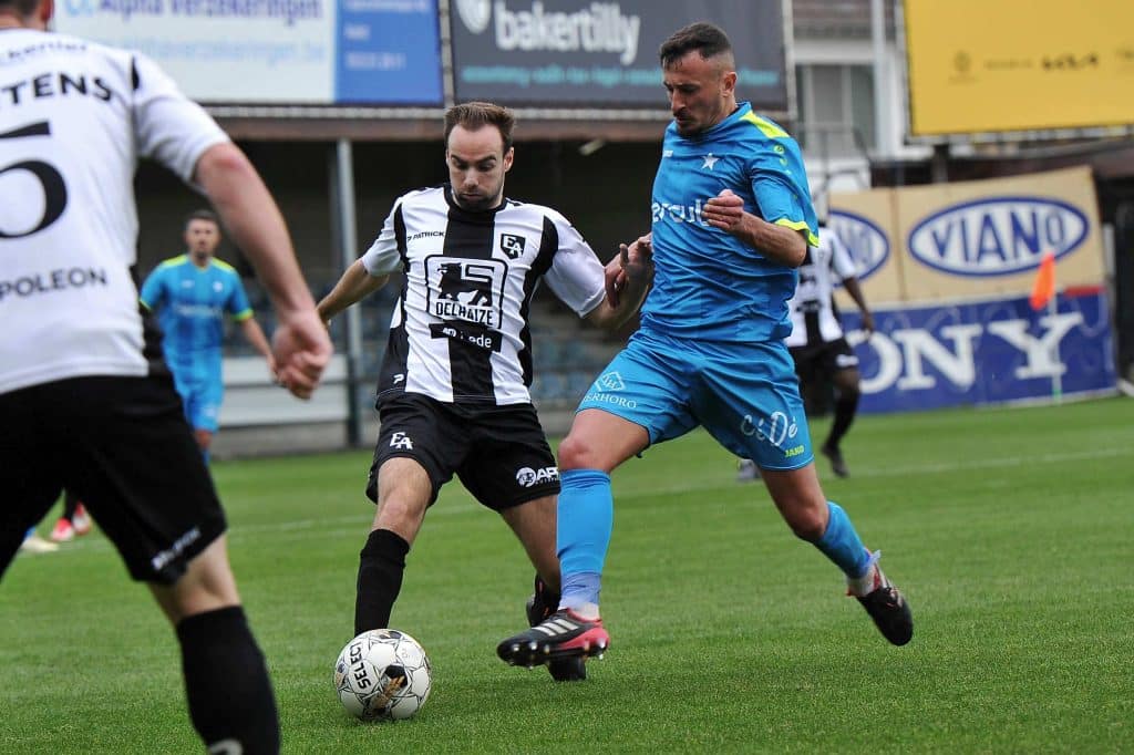 Eendracht VS White Star Lauwe Zondag 2 november, 14u30 Pierre Cornelisstadion Derde nationale Home - Wedstrijden - Eendracht Aalst Lede – White Star Lauwe Voorbeschouwing Wedstrijdfases Verslag Foto Livestream AFTRAP | Voor de wedstrijd tegen White Star Lauwe hebben we opnieuw een Eendracht-coryfee op bezoek met Johan Dierickx, die in de jaren zeventig en tachtig als jeugdproduct liefst 13 seizoenen lang een vaste waarde was in het eerste elftal. De supporters die er toen al bij waren herinneren zich ongetwijfeld de raids van de onvermoeibare Dierickx op de linkerflank in Tweede en Derde Klasse. Na zijn carrière baatte hij 27 jaar de krantenwinkel Press Shop uit in de Kattestraat. Morgen willen we mee aan de leiding blijven en, wie weet, nog spelen voor de eerste periodetitel. Supporters allen op post!!! 93' Er moet gescoord worden om te winnen en dat lukte vandaag niet. We blijven steken op een scoreloos gelijkspel. 85' Wantens trapt de bal weg nadat er was gefloten en krijgt geel. 83' Hornick en Verkimpe komen in de plaats van Rosschaert en Kofi Nyarko. 82' Degrendel toont zich klemvast bij de trap van Van Den Eeckhout. 79' De vrije trap van Van Peteghem is te centraal. De doelman bokst weg. 74' We zijn vandaag overigens met 1180 toeschouwers. 70' Degrendel brengt redding op de vrije trap van Wantens. 65' Scoren lijkt echt niet te lukken vandaag. Eerst besluit Ndefe op de vuisten van Degrendel. Nadien is het Remacle die over trapt. 57' Couckuyt komt alleen voor doel maar verkwanselt de kans. Hij trapt ver naast. 56' Na een voorzet komt de bal bij Kofi Nyarko terecht. Ook hij besluit naast. 53' Triest mikt van dichtbij naast. De lijnrechter stond ook wel met de vlag omhoog. 50' Degrendel kan een Aalsterse hoekschop wegboksen. 46' De tweede helft is begonnen. 45' We rusten bij 0-0. 44' Geel voor Pardo. 43' De indraaiende voorzet van Van Den Eeckhout gaat tegen de netten. Scheidsrechter Zharkov ziet wellicht als enige een duwfout en keurt de goal af. 41' Gele kaart voor Geenens. 37' Kofi Nyarko kopt van dichtbij op de doelman. Dit was haast een niet te missen kans. 36' De poging van Ndefe wordt nog afgeweerd. Triest kan ook de rebound niet verzilveren. 31' Het kopballetje van Kaba gaat ongevaarlijk naast. 27' Bij de eerste paal kan Triest de voorzet van Wantens niet verlengen. 26' Ndefe snijdt naar binnen maar wordt afgeblokt. 25' Triest raakt de bal niet goed waardoor ook dit zonder gevaar voorbij gaat. 19' Na een collectieve aanval kan Van Den Eeckhout voorzetten. De bal wordt weggewerkt. 16' De vrije trap van Adim gaat naast. 13' Geel voor Couckuyt na een overtreding op Van Den Eeckhout. 11' Drie opeenvolgende corners leveren niet meteen resultaat op. 8' Door de vele afwezigen speelt Geenens centraal achterin. Van Den Eeckhout is rechtsachter. 7' Cooman stopt de poging van Couckuyt in twee tijden. 4' Ndefe besluit met links voorlangs. 1' Triest heeft het duel op gang mogen trappen. Vooraf' Naast Londot, Straetman en Van Leuven kan trainer Casieris vandaag ook geen beroep doen op Dekuyper, Lanckman (allebei geelgeschorst), Bauwens en Odjidja ((allebei een scheurtje in de adductoren). Als je niet scoort, kan er hoogstens een punt geraapt worden en dat is exact wat deze namiddag gebeurde. Eendracht vergat zichzelf te belonen en zette het overwicht niet om in een zege. Lauwe, dat duidelijk niet kwam om te voetballen en alle middelen om tijd te rekken gebruikte, overleefde en kaapte een punt mee. Overwicht niet omgezet in voorsprong Naast Londot, Straetman en Van Leuven ontbraken vandaag ook nog Dekuyper, Lanckman (beiden geelgeschorst), Odjidja en Bauwens (allebei met een scheurtje aan de adductoren). Eendracht voetbalde aardig en kreeg ook kansen. Meteen was er al een schotje van Nicolas Van Peteghem, hoog over (3’). Robby Ndefe mikte met links voorlangs (4’). Joran Triest miste zijn interceptie (25’) en kon kort nadien ook een voorzet van Wantens niet richting doel verlengen (27’). Het schot van Robby Ndefe werd voor de lijn ontzet (35’). De druk en de dreiging rond de bezoekende zestien bleven aanhouden maar finaal liep het altijd net mis. De rust naderde al wanneer Nicolas Van Peteghem van aan de linkerkant perfect voorzette tot bij een alleenstaande Kofi Nyarko. Van heel dichtbij kopte hij naar de grond maar ook op de doelman (37’). Even later leek de ban dan toch gebroken toen een indraaiende voorzet van Tim Van Den Eeckhout tegen de netten ging. Consternatie toen bleek dat scheidsrechter Zharkov, wellicht als enige, een duwfout van Joran Triest zag en de goal afkeurde (43’). Scoren lukt ook na de rust niet Een zelfde scenario in het eerste deel van de tweede helft. Joran Triest mocht het proberen van op één meter van doel maar besloot nog naast (53’). Amper later knalde hij, na een hoekschop, op een tegenstander (56’). In dezelfde fase kopieerde Kofi Nyarko de knal van Joran, ook nu zonder succes dus. En dan was er, zoals altijd in voetbal, toch die ene kans voor de West-Vlamingen. Couckuyt mocht alleen op doel af maar plaatste de bal onbegrijpelijk meters naast de verste paal (57’). Aan de overkant knalde Robby Ndefe op de vuisten van Degrendel en in de rebound schoot Mathis Remacle hoog over (65’). Lars Wantens plaatste een vrije trap richting de kruising maar Degrendel voorkwam met een knappe redding andermaal de openingstreffer (70’). Naarmate de tijd vorderde, hanteerde Eendracht iets meer de lange bal en nam de zenuwachtigheid toe, wat dan weer nadelig was voor de scherpte, die voordien ook al ontbrak. Er werd iets te overhaast naar doel gemikt, veelal niet binnen het kader. Lauwe haalde op alle mogelijke manieren het tempo uit de wedstrijd. De blessuretijd van 2,5 minuten was dan ook niet logisch te noemen. Mits efficiëntie van onze kant waren de drie punten een zekerheid geweest maar daar wrong dus het schoentje. Volgende week is er de verplaatsing naar een verrassend sterk spelend Sint-Denijs. Om de voeling met de top te bewaren, wordt er best 