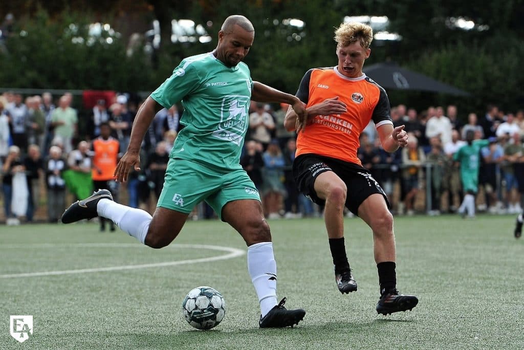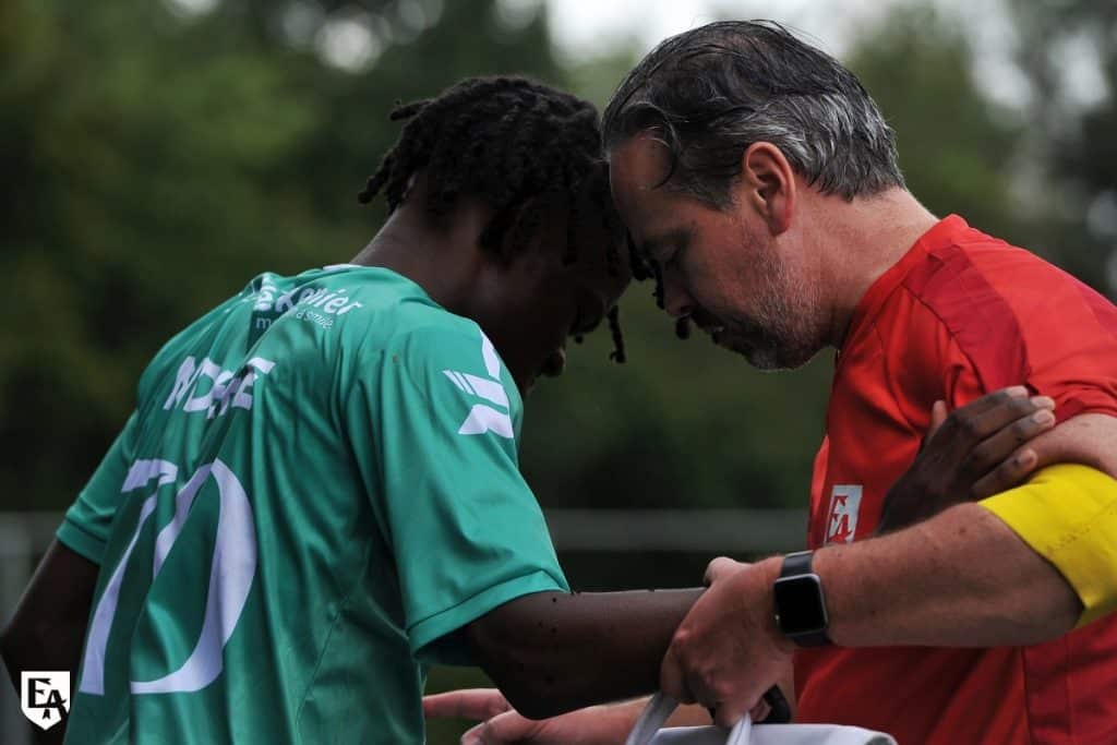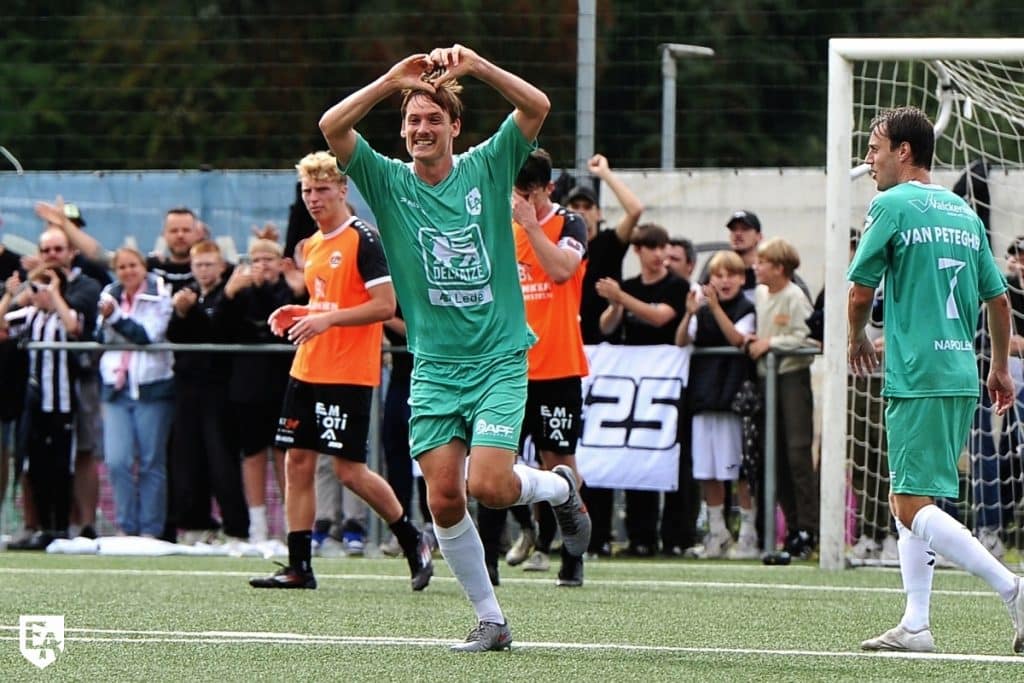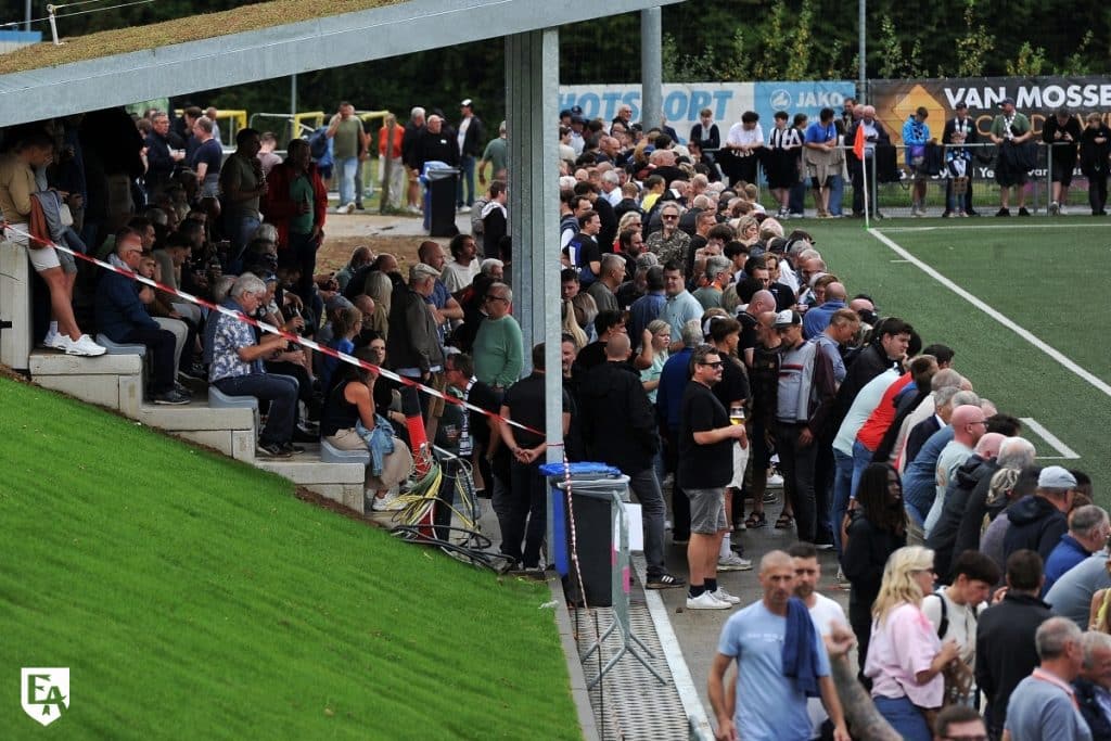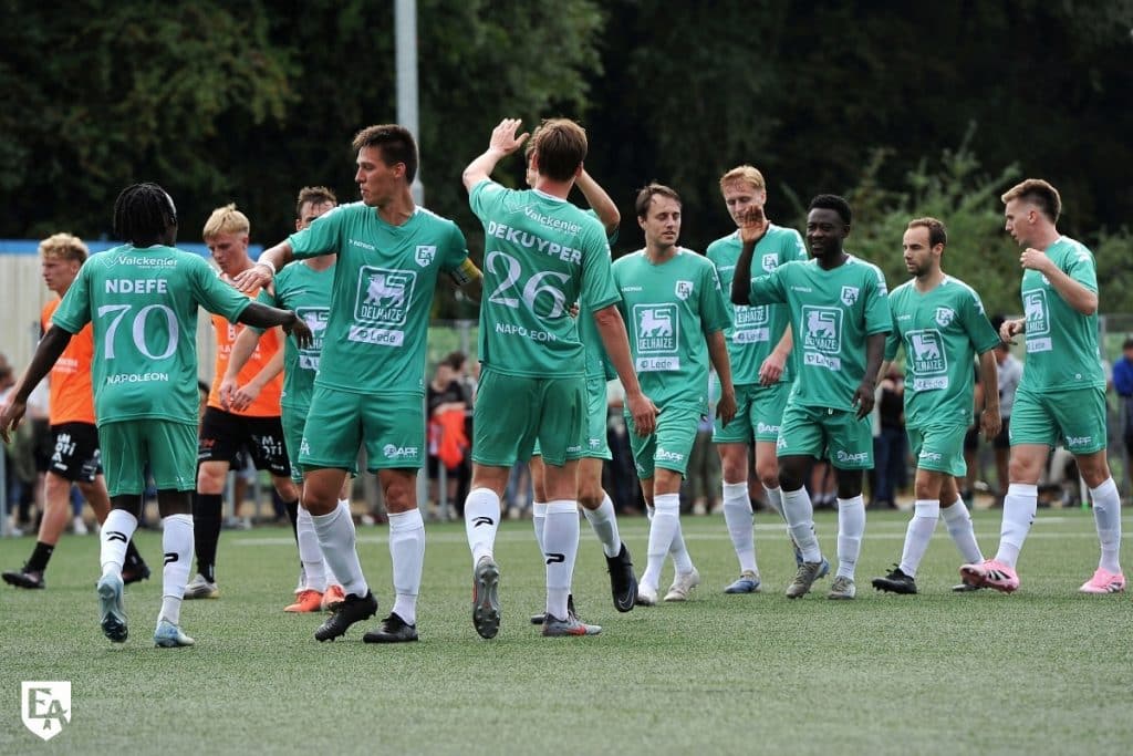 Erpe-Mere United VS Eendracht Zondag 31 augustus, 15u00 Steenberg Derde nationale 1-3 Home - Wedstrijden - Erpe-Mere United – Eendracht Aalst Lede Verslag Video Foto Om exact 15u02 floot de scheidsrechter de competitie 2025-2026 op gang voor Eendracht Aalst Lede en Erpe-Mere United. De derby waar al wekenlang over gesproken werd, tussen de titelfavoriet enerzijds en aan de andere zijde een ploeg die de top vijf ambieert, kon rekenen op een volle Steenberg met ruim 1300 aanwezigen. Hoekschop levert andermaal succes op Bij Eendracht nog geen Joran Triest en Bryan Londot. Omdat er bij een competitieduel maar 16 spelers op het wedstrijdblad mogen staan, vielen sommigen ook nog uit de boot omwille van de ruime selectiemogelijkheden. De eerste helft bood niet meteen het verhoopte spektakel. De bezoekers probeerden meteen de wedstrijd te domineren. Binnen de eerste minuut was er al een eerste hoekschop maar Kofi Nyarko besloot die met een schot hoog over doel. Corners zijn dit seizoen een zware troef voor Eendracht, wat nogmaals bewezen werd in minuut acht. Falko Geenens verlengde de bal tegen de touwen op assist van Bob Straetman (0-1). Er volgde niet meteen een intense reactie van Erpe-Mere United maar door hoog druk te zetten, brachten ze de opbouw bij de bezoekers soms toch wat uit evenwicht. Kansen bleven schaars. Na een niet gefloten fout kon Laerenbergh wel uithalen maar de bal belandde niet tussen het kader (20’). Schuchtere pogingen van Eendracht kwamen er via Kofi Nyarko naast (22’), en Simon Lanckman, over doel (28’). Op het vrij kleine kunstgrasveld was het niet makkelijk om goede kansen te creëren. Het spel ging vrij evenwichtig op en af maar buiten een paar gemene, meestal niet gefloten overtredingen, viel er weinig te beleven. Ook de talrijk aanwezige toeschouwers haalden nog niet meteen hun hoogste decibels boven. Als afsluiter van deze vrij inspiratieloze eerste helft probeerde Laerenbergh het nog eens. De poging ging centimeters naast de paal (40’). Verdedigers aan het kanon Meteen sensatie bij aanvang van de tweede helft. Slecht inspelen schonk Brabants D’Hooghe vrije doorgang. Doelman Ebbe Cooman liet zich niet verschalken. Aan de overzijde kwam een vrije trap van Bob Straetman uiteindelijk bij Kofi Nyarko terecht. Zijn harde knal raakte de onderkant van de lat (51’). Er zat nu meer tempo in de wedstrijd. De thuisploeg mocht een hoekschop nemen, niemand kon er de voet tegen zetten (52’). Falko Geenens deed het met een scherpe voorzet van rechts, ook hier kon niemand afwerken (55’). Het schot van Simon Lanckman was te zwak om als gevaarlijk bestempeld te worden (59’). Wat volgde, waren een tiental emotieloze minuten. Tot een hoekschop van Bob Straetman andermaal succes opleverde. Falko Geenens kopte eerst nog op de lat maar Calvin Dekuyper kon de rebound wel tegen de touwen krijgen (0-2). Amper twee minuten later hing EMU helemaal in de touwen. Lars Wantens, met een verleden bij het toenmalige Bambrugge, recupereerde de bal en knalde, na een dubbelpass met Kofi Nyarko, overhoeks binnen (69’). Vol vertrouwen dreigde Eendracht nu langs alle kanten. De ingevallen Mathis Remacle zag zijn poging op de dwarsligger eindigen (74’). Een perfecte voorzet bereikte de alleenstaande Kofi Nyarko, die echter nog over doel kopte (75’). Plots bood een hapering in de verdediging Vandoorne de kans om tegen te scoren (80’). Heel even leken de lokalen nog iets uit de brand te willen slepen maar de piek was van korte duur. Ze slaagden er niet meer in om nog echt in buurt van Ebbe Cooman te komen. Eendracht speelde op een volwassen manier de resterende minuten uit en mag zich uiteindelijk een verdiende winnaar noemen. Volgende zondag is er de volgende wedstrijd in de Croky Cup. Tegenstander is Eendracht Termien en, volgens wat we horen, zou dit een vrij sterke opponent worden. De winnaar zal sowieso een eersteklasser loten. Verslag: Roland Creutz Redactie: webteam Match info Eendracht Aalst Lede 3 Erpe-Mere United 1 Zondag 31 augustus, 15u00 Steenberg Oudenaardsesteenweg 458, 9420 Erpe-Mere 8' Falko Geenens 0-1 (Assist: Straetman)67' Calvin Dekuyper 0-2 (Assist: Geenens)69' Lars Wantens 0-3 (Assist: Kofi Nyarko) 31' Ilian Favoreel 36' Bob Straetman 51' De Nauw 58' Pauwels Eendracht Aalst Lede 21 Ebbe Cooman 18 Falko Geenens 26 Calvin Dekuyper 4 Ilian Favoreel 5 Lars Wantens 6 Jarne Rosschaert 24 Simon Lanckman 7 Nicolas Van Peteghem 11 Bob Straetman 70 Robby Ndefe 19 Emmanuel Kofi Nyarko Wissels 71' Mathis Remacle 77' Jari Bauwens 77' Vadis Odjidja 87' Jelle Hornick 71' Nicolas Van Peteghem 77' Ilian Favoreel 77' Jarne Rosschaert 87' Robby Ndefe Erpe-Mere United 1 Gabriel 2 De Nauw 3 Lambertin 8 Pauwels 9 Movoto 10 Laerenbergh 13 Brabants D'Hooghe 15 Beerens 28 Vandenberghe 44 Vancutsem 77 Spijkers